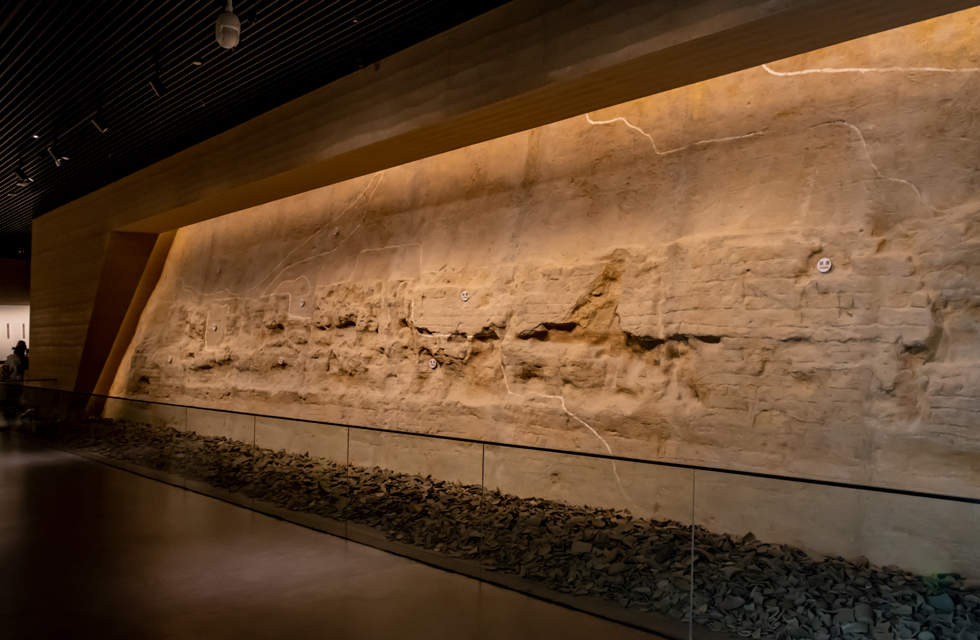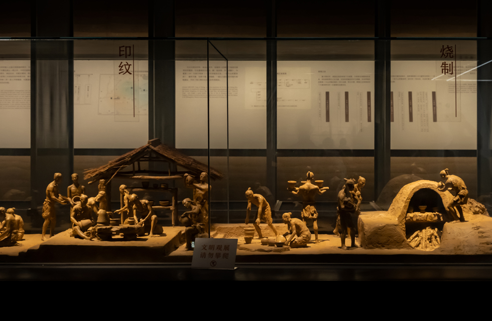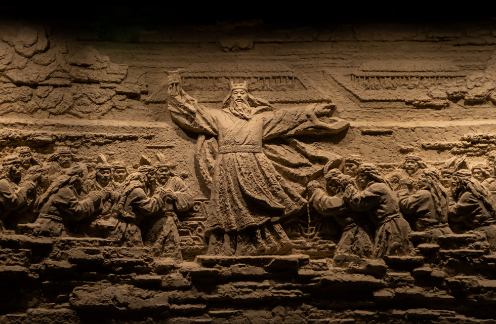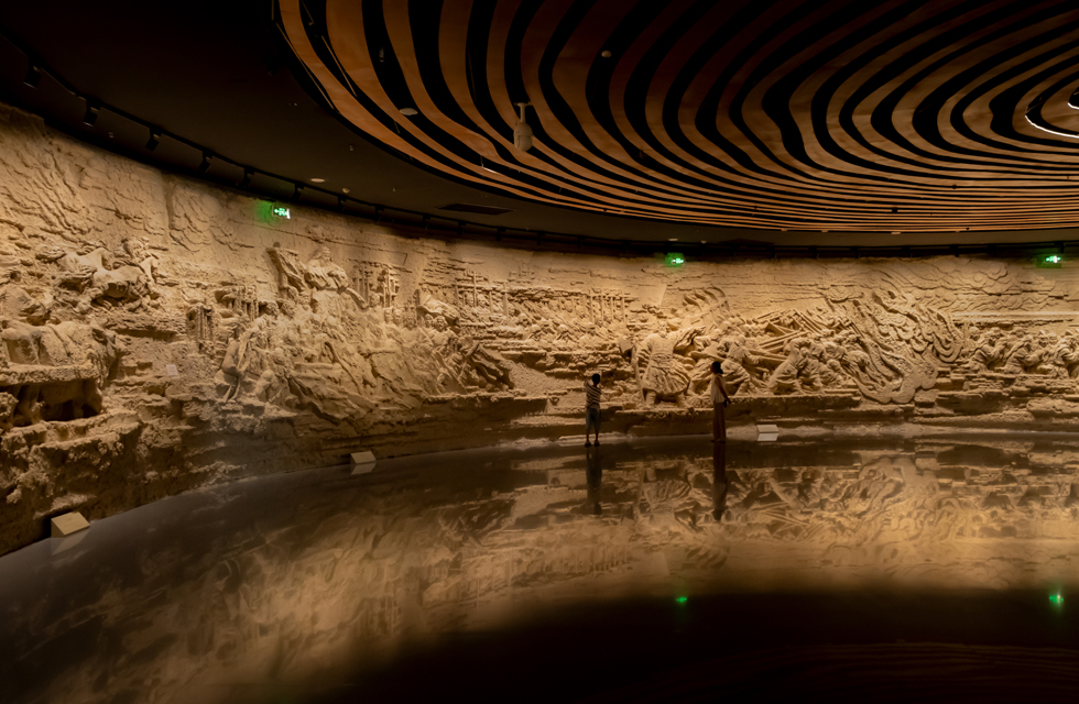 巨幅环形浮雕墙气势磅礴,讲述着先商和商代故事。