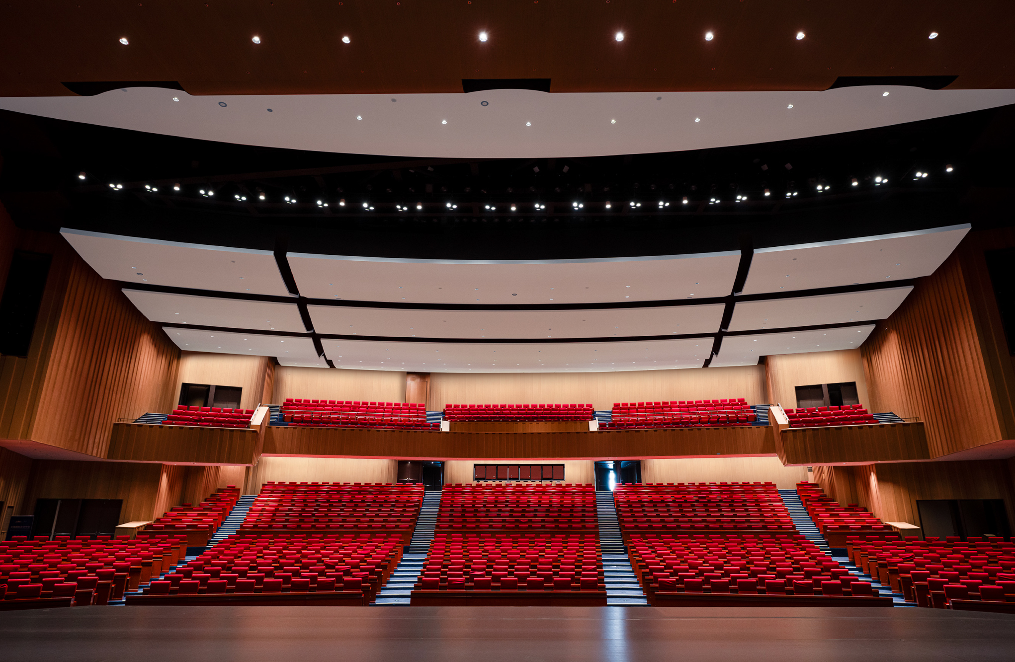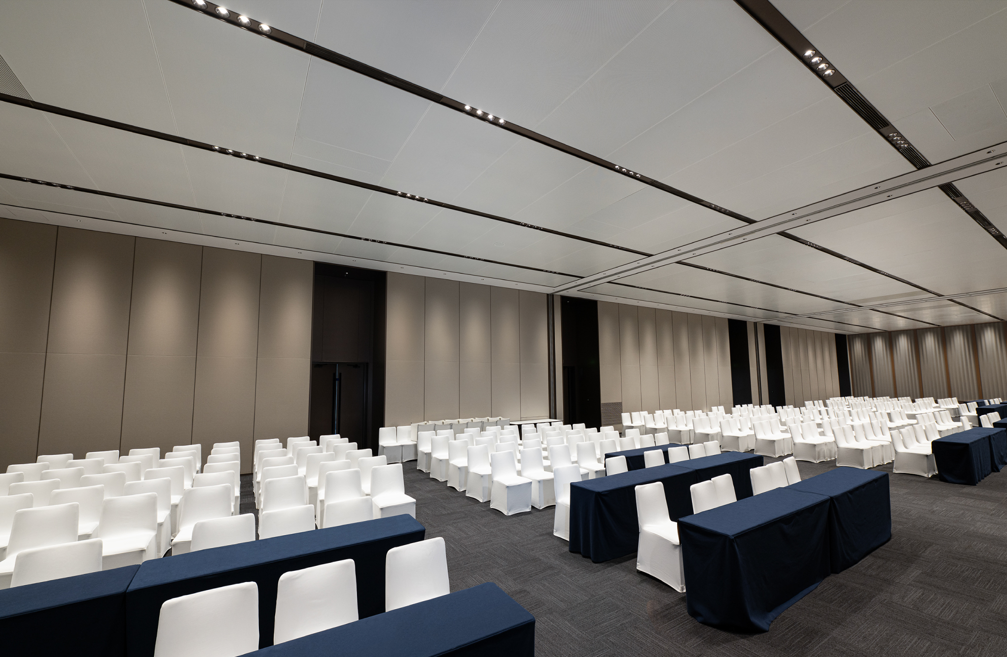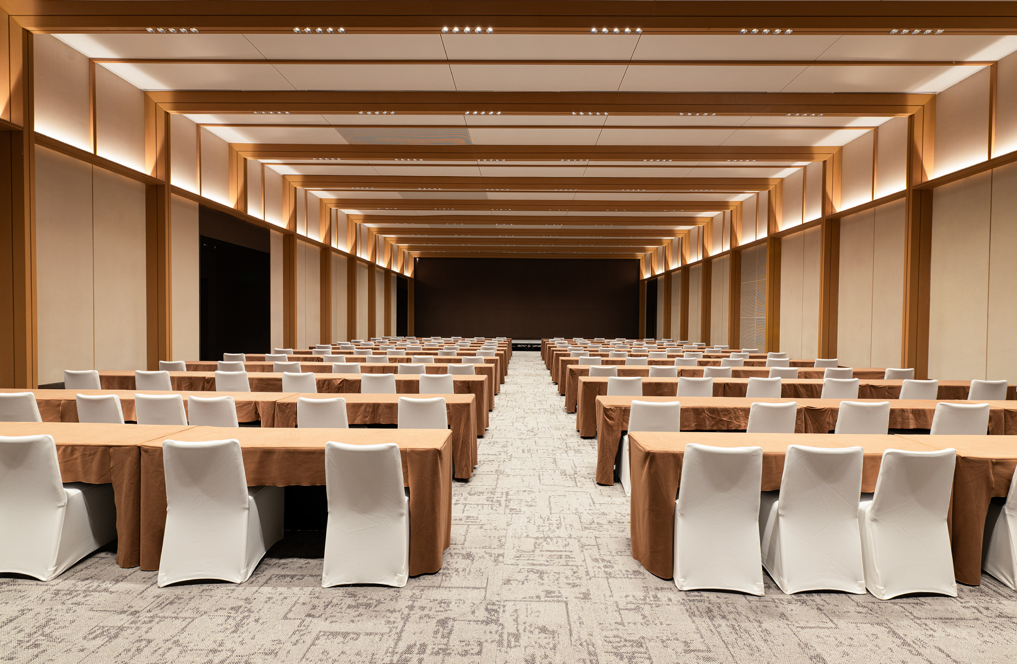 无锡国际会议中心采用3500K中性色温基准光环境,精准契合国际会议场所所需的庄重典雅气质,既避免冷白光带来的严肃感,又规避暖黄光的休闲属性,在12万平方米空间内建立起视觉连贯性。同时,光色与建筑米色石材立面、深灰金属装饰形成冷暖对比,强化"太湖石"造型的立体层次。