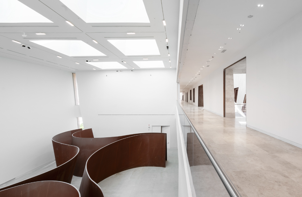 展厅顶部特别采用了 FALCON SQUARE LARGE 大功率投光灯,其高光效在 12 米的高空间依然能保证充足照度,该系列搭载 WAC 发明专利 SUBROSA®️ 隐光技术,具备 35° 防眩角,灯具表面无可视光,最大化降低视觉干扰,保证参观者沉浸式的观赏体验。