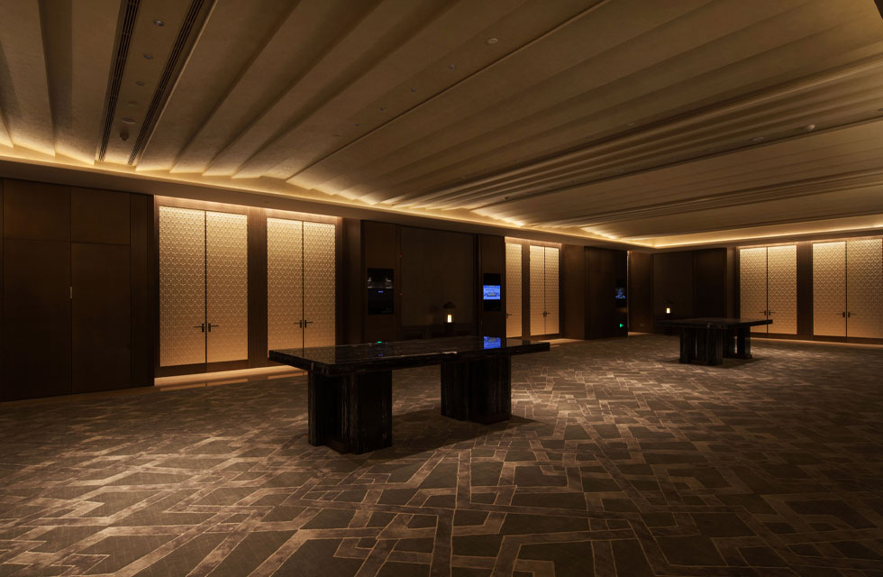在宴会前厅及会议前厅,设计师运用了大量的漫反射和间接光,给来访者提供了一个格外柔和放松的空间。通过巧妙的灯光节点处理,并选择具有良好防眩光性能的灯具,在主要方向上几乎没有视觉干扰。