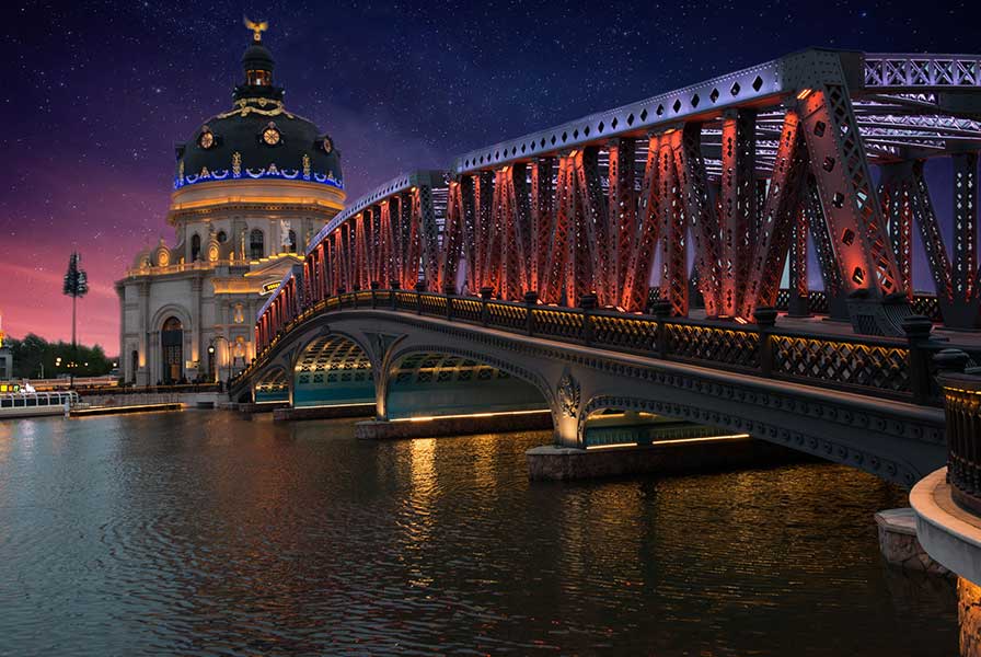 WAC充分发挥定制化服务优势,特别定制多款户外照明灯具,点亮飞马水城。月色皎皎,水波粼粼,开阔的水域环绕一幢幢欧式风格的建筑、一座座异国风情的雕塑,一缕缕五彩斑斓的灯光,徜徉其中,别有一番风情。