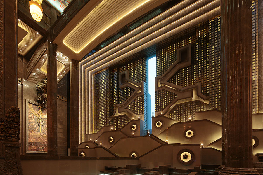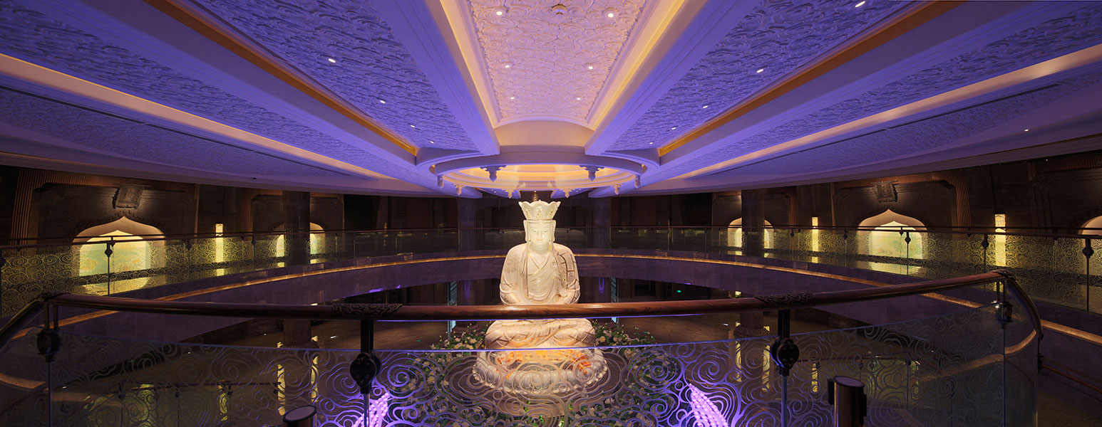 在四大亮点之中,弘愿堂作为最重要的大型中央建筑,以其磅礴的气势、丰富的典藏、独具匠心的设计以及 如幻如真的光影环境赢得了广泛的赞誉。此次,本文便以弘愿堂为项目核心,重点介绍其照明设计。