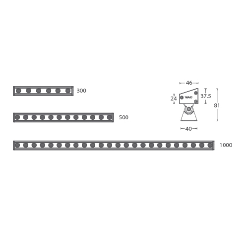| ELW505-28MT-WB40BK | 500mm | 26.4W | 24V DC | DMX512 Dimming | Wall Washer | 底部出线 | 4000 | 黑色 |