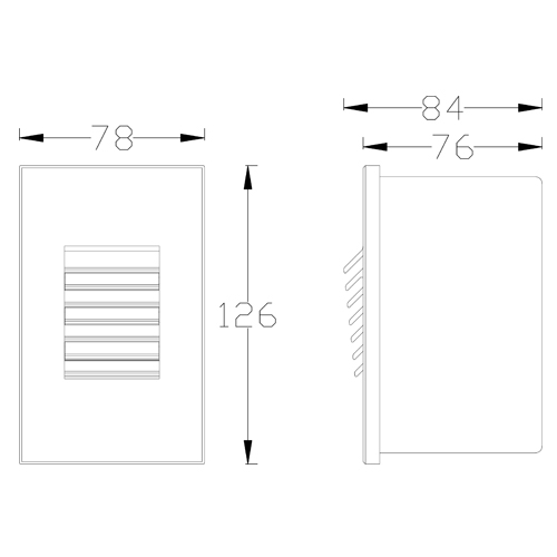 | WL220-LD04E-L30BK | 百叶窗式出光 | 黑色 | 220V AC/50Hz | ON-OFF | ▱ 74x118 | 3.2W | 偏配光 | 3000 |