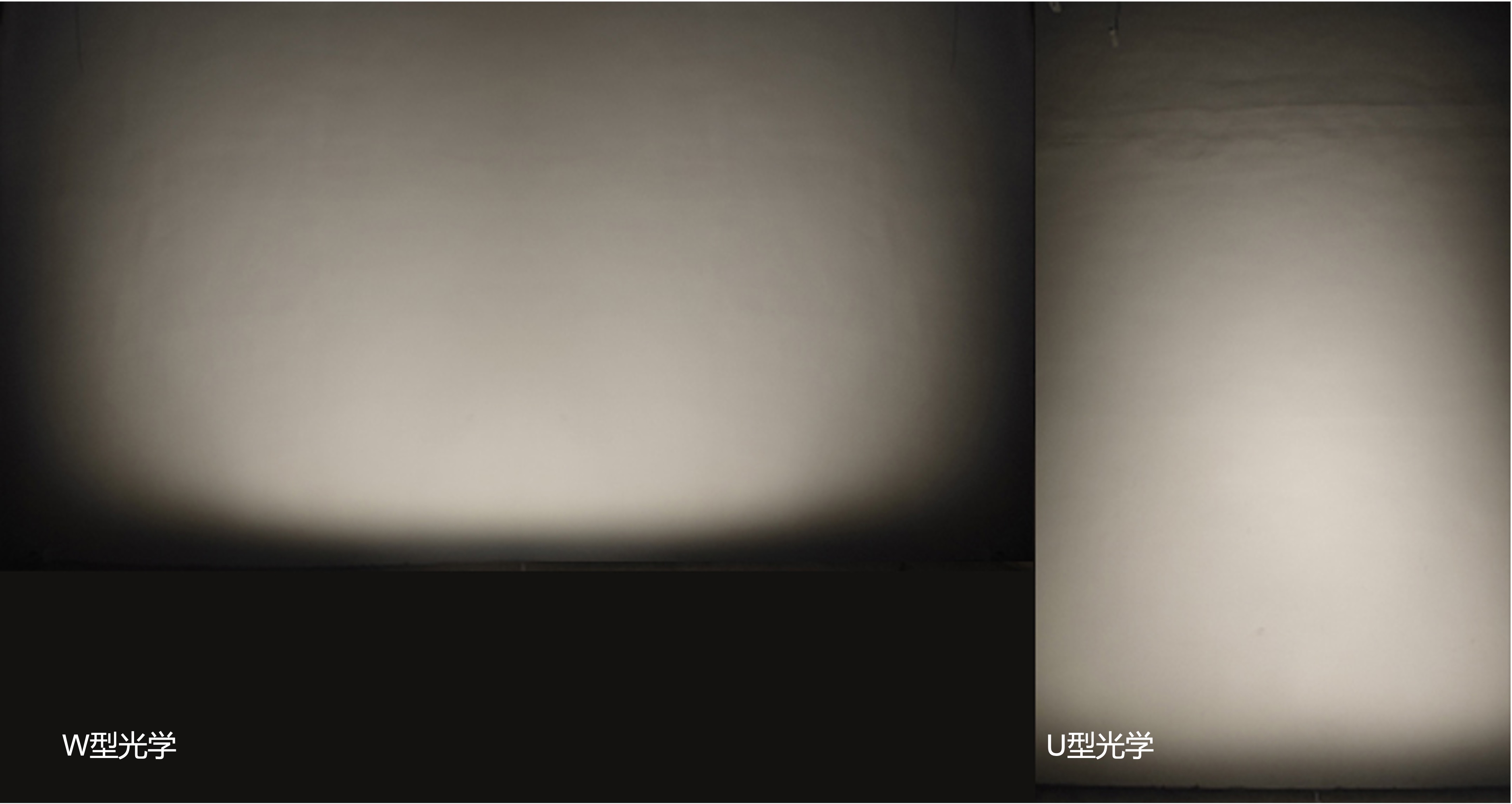 左为横向洗墙H:D=1:2.5 & 1:4.5效果对比;右为纵向洗墙H:D=1:2 & 1:3效果对比