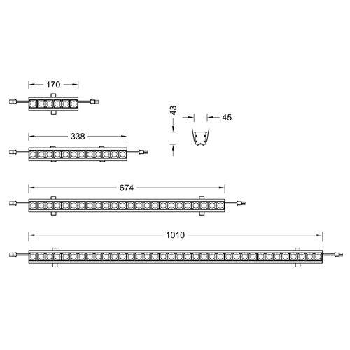 | LGAR5-1824N-430BBK | 黑色 | 24V DC | ▱ 674x37 | 674mm | 24 | 12W | 44° | 3000 |