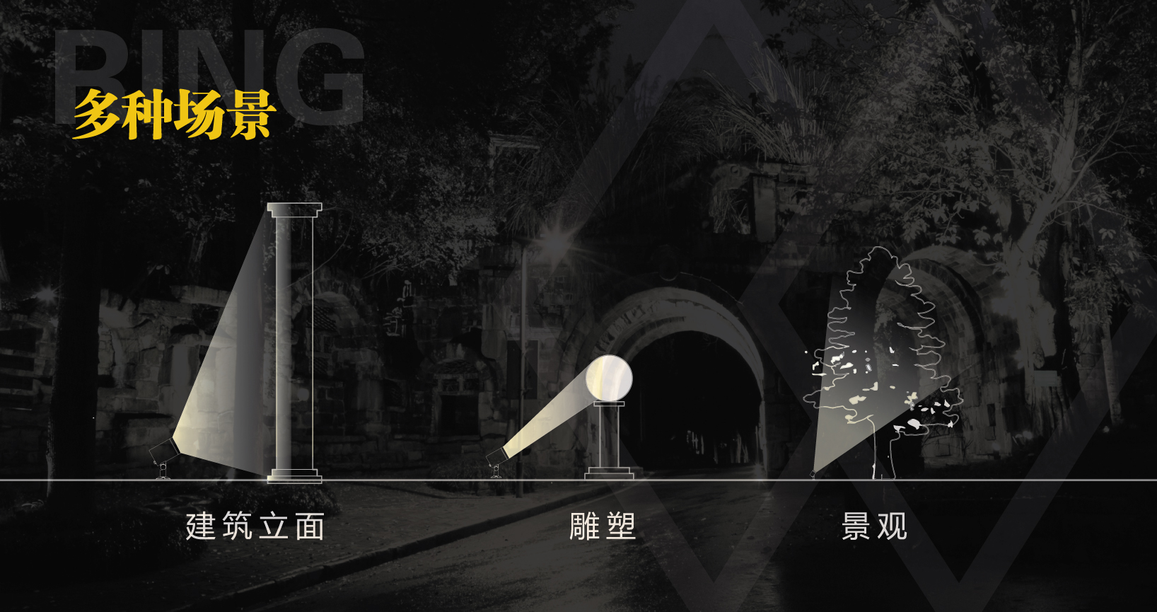 灯体具有紧凑的尺寸,利用有效散热,延长LED寿命。简洁的外形和高性能的光学表现更凸显环境。系列具有多种尺寸以及最新的LED 技术,可以垂直和水平方向精确调节转向。可应用于建筑立面和景观、雕塑等投射场所。