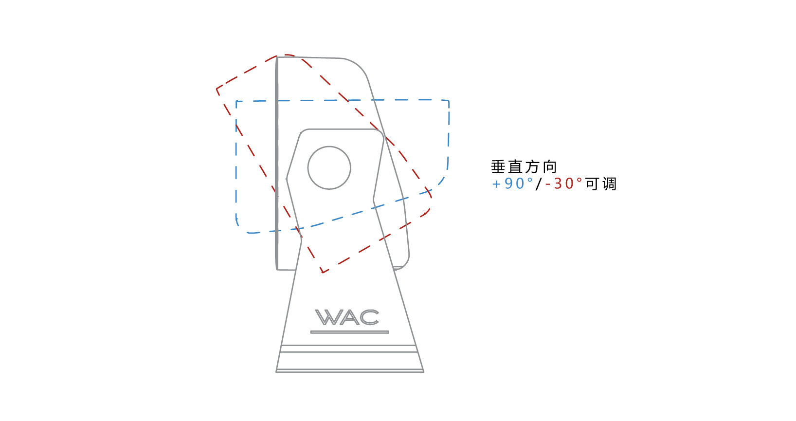 垂直方向+90°/-30° 可调,超窄角度更有无极微调配件可选,确保大功率小角度精准照射被照面,减少反复调整灯具位置的工作。