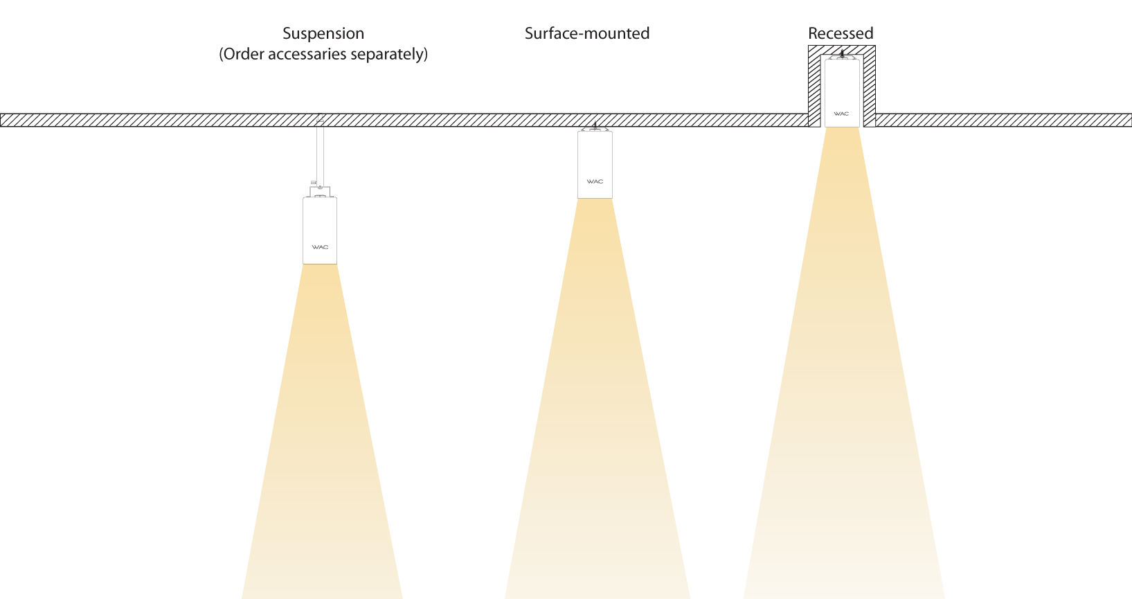 提供悬挂式、明装式和嵌入式三种不同的安装方式。