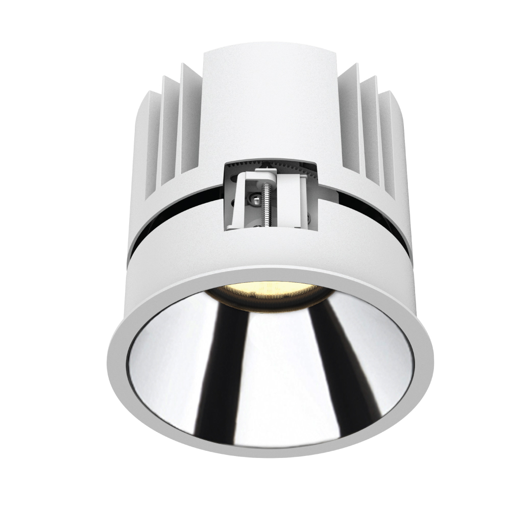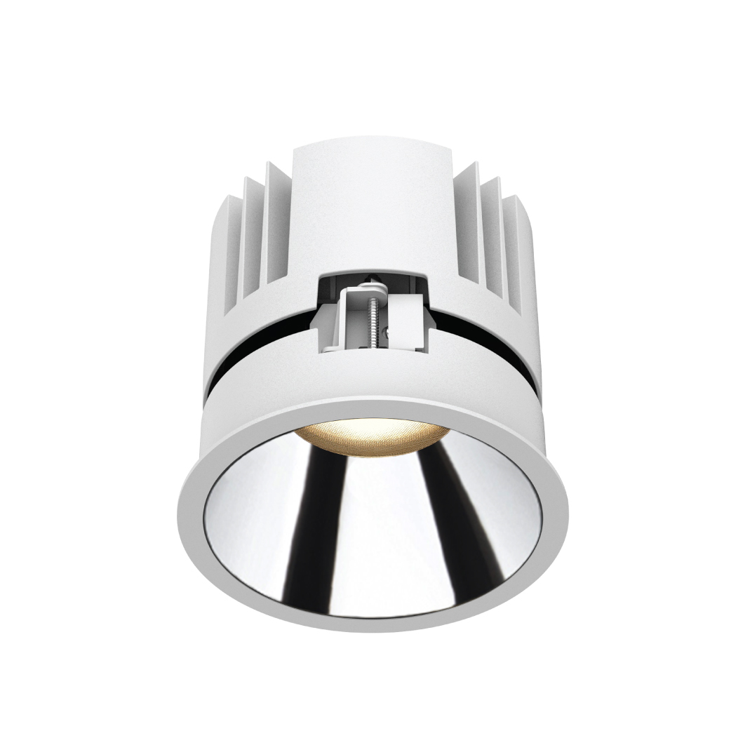 圆形窄边嵌入式下照筒灯,流线型外观,采用精准的透镜和黑镜反射器设计,保证超高光效的同时仍能达到极致的防眩效果,也可自由拆卸并更换反射器或光学配件,极大的提高了现场的便利性,主要适用于酒店及商业室内场所。