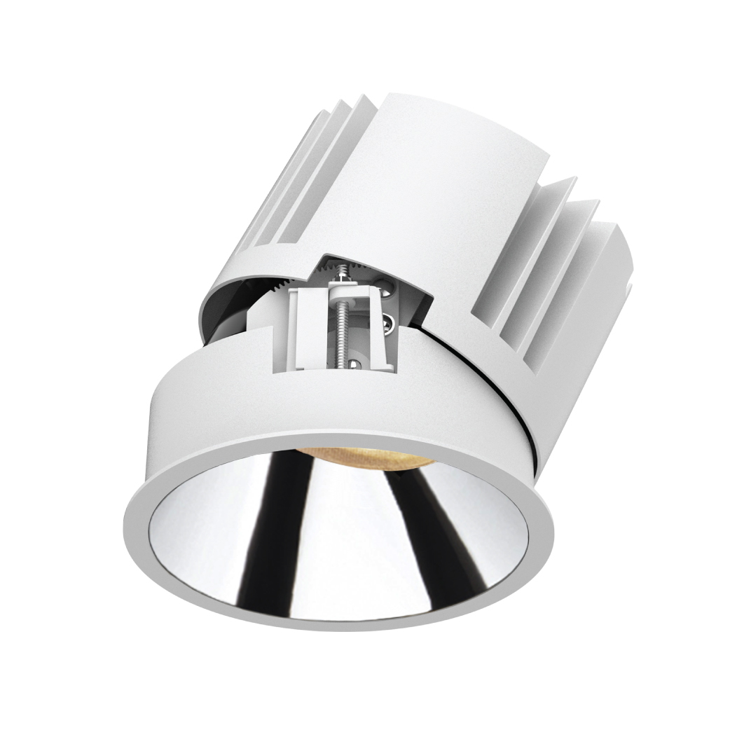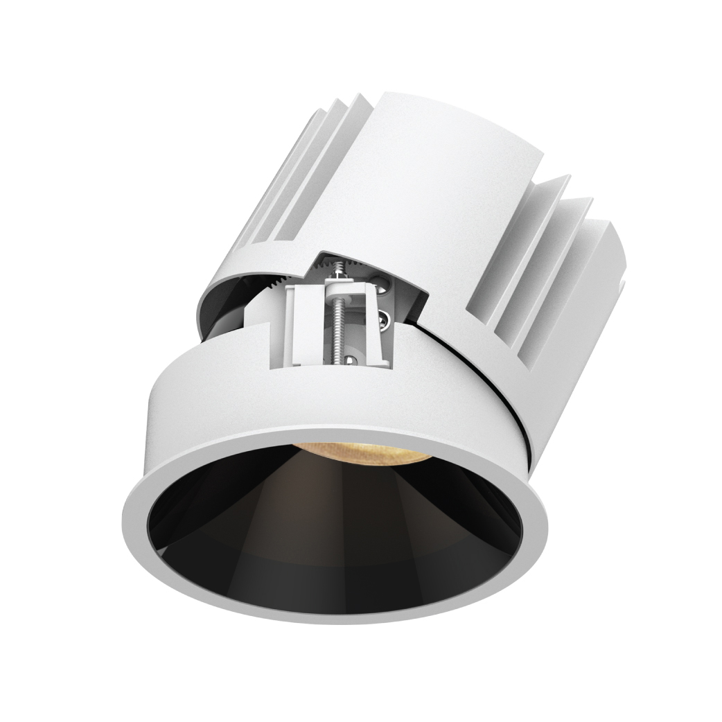 圆形窄边嵌入式调角筒灯,流线型外观,采用精准的透镜和黑镜反射器设计,保证超高光效的同时仍能达到极致的防眩效果,也可 自由拆卸并更换反射器或光学配件,极大的提高了现场的便利性,主要适用于酒店及商业室内场所。