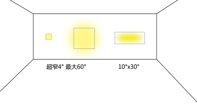 超窄角度4°、最大可至60°。椭圆配光以及洗墙配光,为不同尺寸展品“量体裁衣”。 杂散光控制优异,光影流转间,不喧宾夺主,将细节做到极致